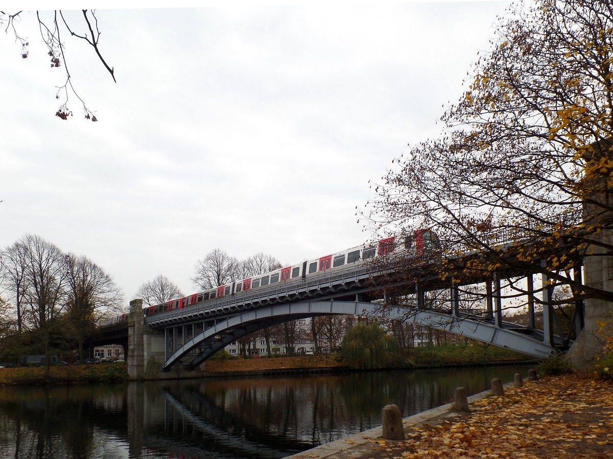 Hamburg am 14.11.2018: DT 5 der Linie U3, auf der Kuhmühlenbrücke Richtung Barmbek zwischen Uhlandstr. Und Mundsburg /