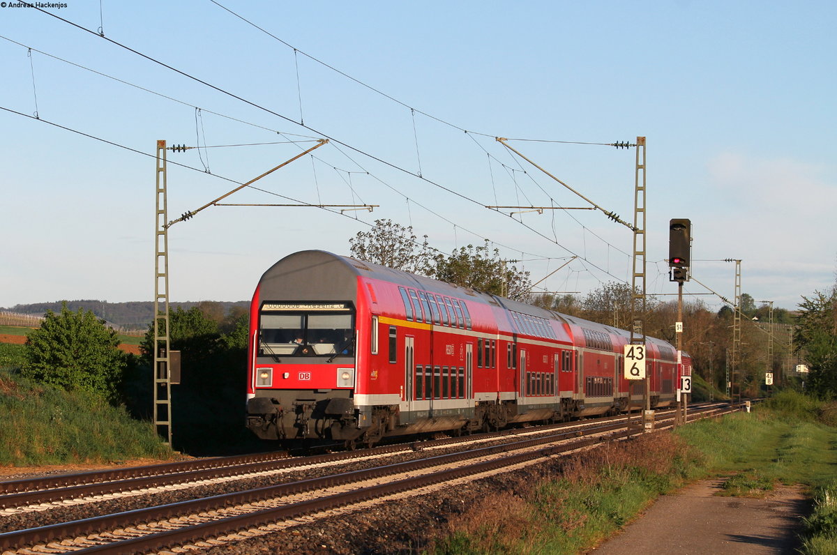 RE 22318, einer der wenigen lokbespannten Personenzüge auf der KBS 755, neuerdings mit BR 245 als Schublok, erreicht in Kürze Bahnhof Schelklingen. Aufnahmedatum: 24.04.2019