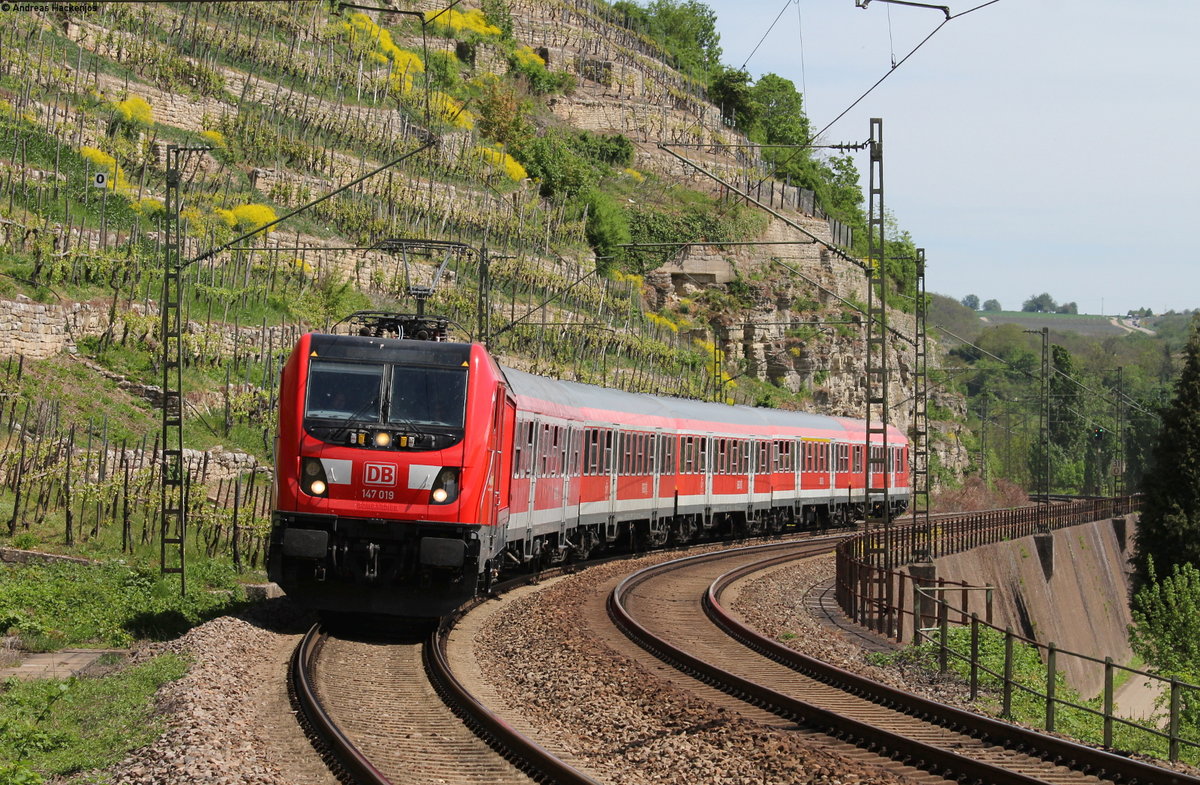 147 019-4 mit der RB 19973 (Heilbronn Hbf-Stuttgart Hbf) bei Besigheim 25.4.19