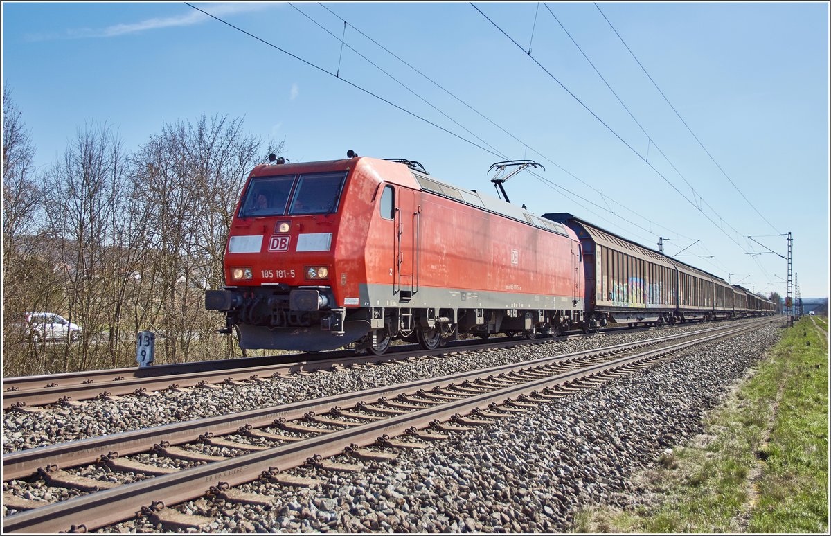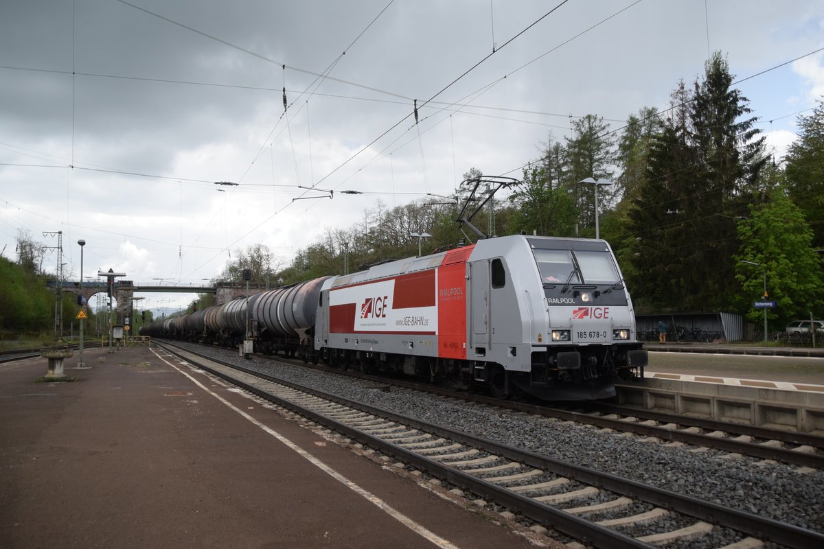 185 678 am 28.04.2019 mit Kesselwagen in Eichenberg.