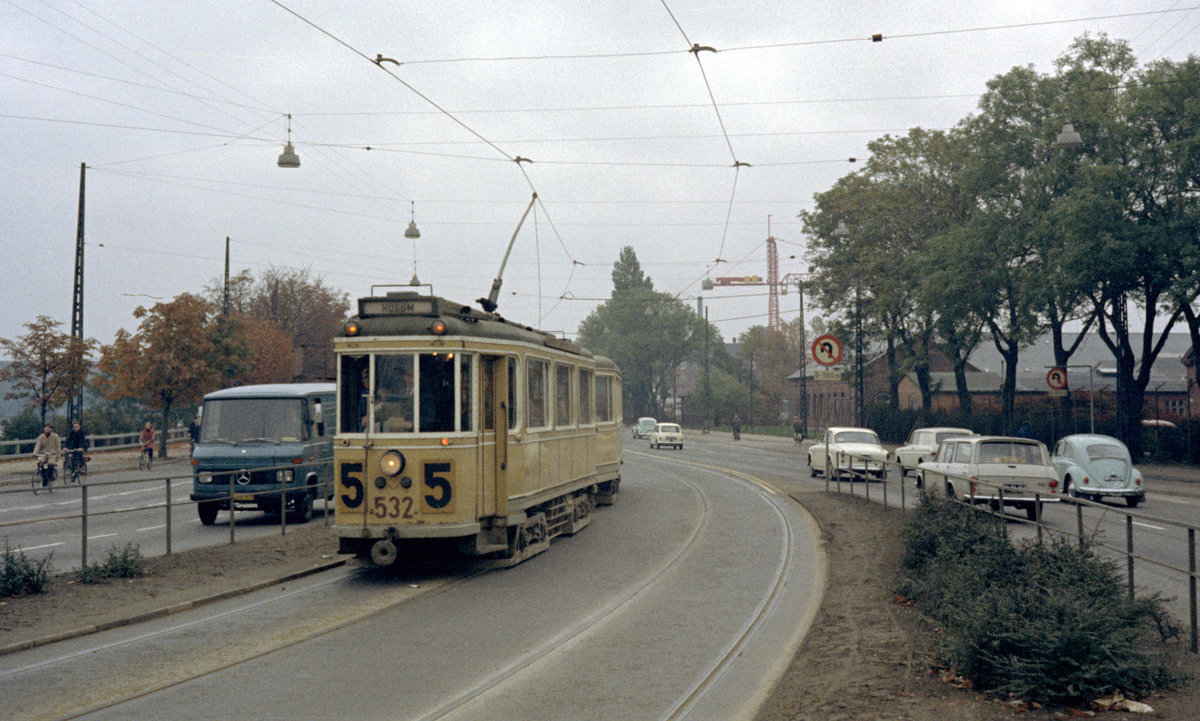 København / Kopenhagen Københavns Sporveje SL 5 (Tw 532 + Bw 15**) København S, Amager Boulevard / Ved Langebro / Thorshavnsgade im Oktober 1970. - Scan eines Farbnegativs. Film: Kodak Kodacolor X.