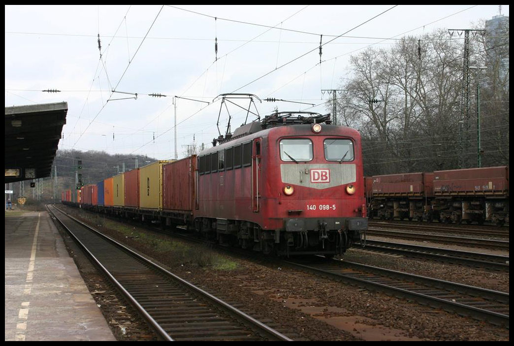140098-5 fährt hier am 17.3.2005 mit einem Container Zug durch den Bahnhof Köln West.