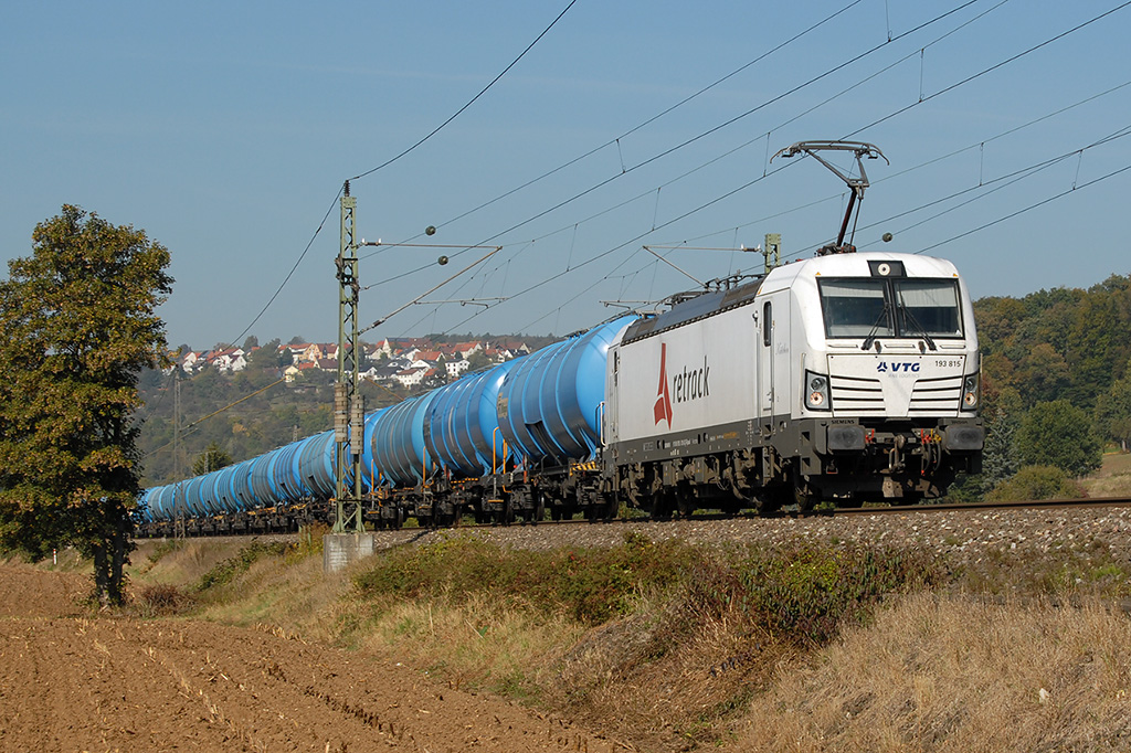 193 793 mit einem Kesselzug am 08.08.2019 bei Strasskirchen.