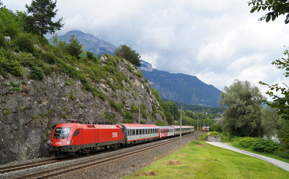 101 040-4 mit einem umgeleiteten Intercity (IC) auf der Bahnstrecke Friedberg-Hanau (KBS 633) bei Bruchköbel am 23. Juni 2019