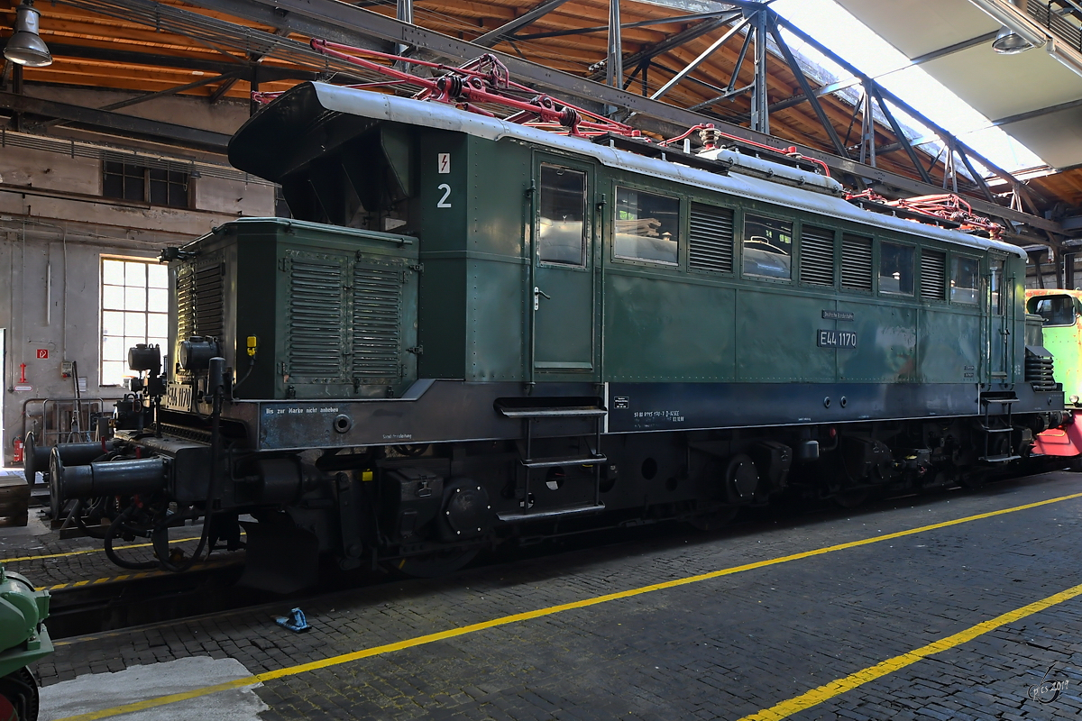 Die Elektrolokomotive E 44 1170 war Anfang Juni 2019 im Bahnpark Augsburg zu sehen.