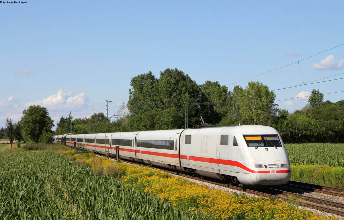 Der 411 006 als ICE am 11.08.2019 unterwegs bei Langenisarhofen.