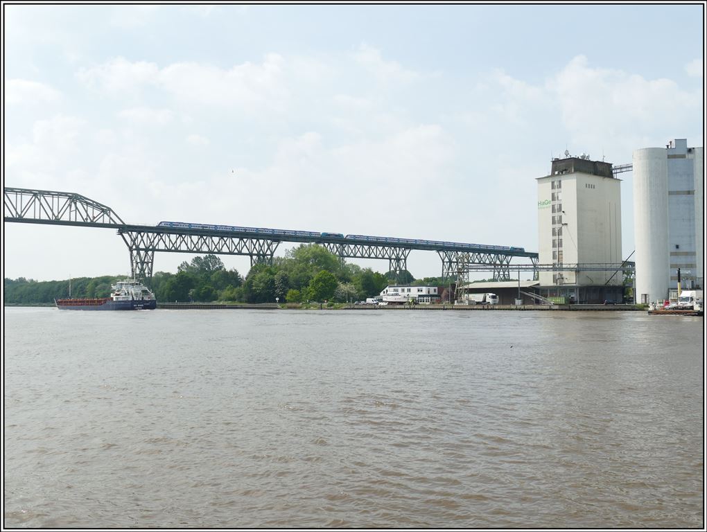 Die Brücke von Hochdonn über den Nord/Ostseekanal mit zwei gekuppelten Zügen der NAH.SH (24.05.2019)