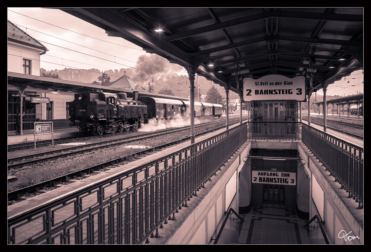 Dampflok 93.1332 fährt für eine Englische Reisegruppe von Wietersdorf nach Klagenfurt durch das Görschitztal. Sichtlich Spaß an der Fahrt hatte nicht nur der Lokführer, sondern auch die jungen Eisenbahnfreunde in Klein Sankt Paul.