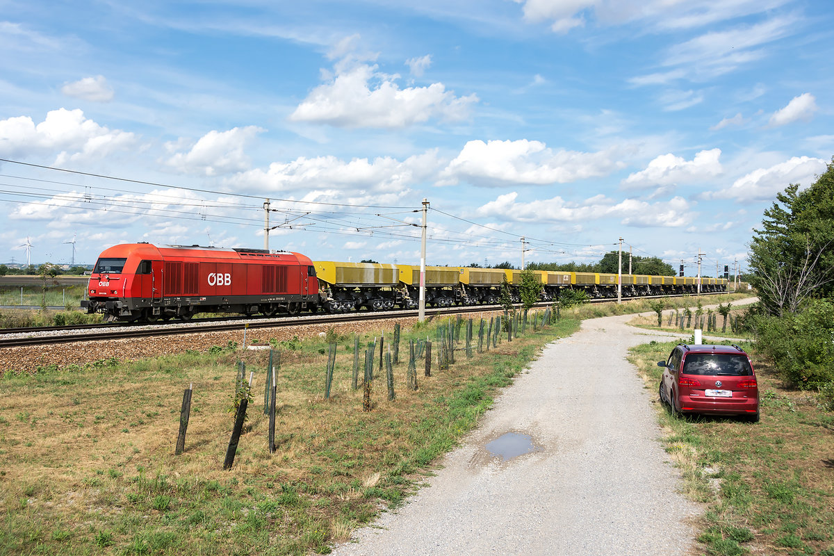 99 81 9131 452-0 (X 552.452) am 02.August 2019 in Jedlersdorf. Im Hintergrund entstehen gerade die Behausungen der künftigen Beschwerdeführer gegen den Bahnlärm.