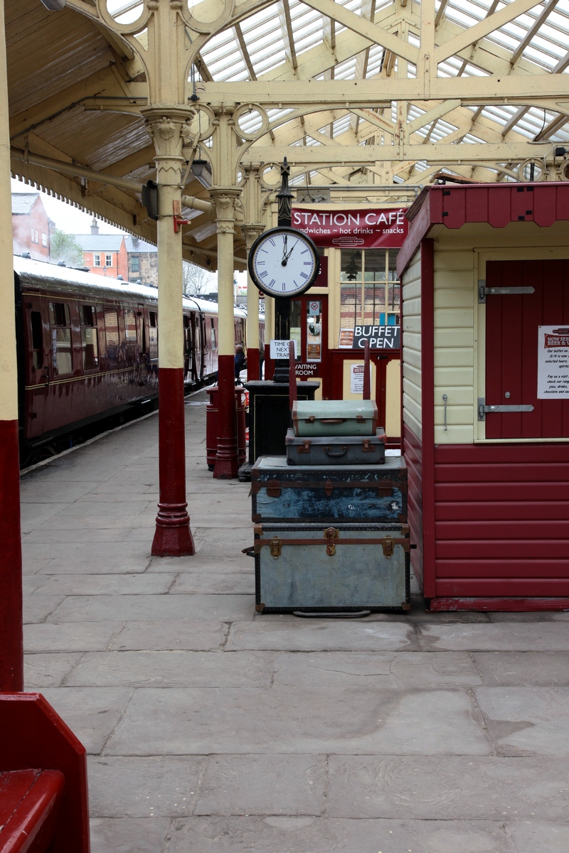 Unser Zug steht am 27.04.2018 abfahrbereit an der liebevoll gestalteten Plattform 3 der Stn. Bury Bolton Street.