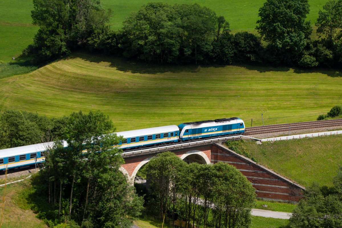 Die MGB Deh 4/4 I – 55 „Brig“ schiebt am 01.08.2019 den Schöllenenbahnzug von Göschenen nach Andermatt nach hinauf und überquert hier gerade die Reuss. Die Strecke Göschenen–Andermatt ist die Schöllenenbahn, eine einspurige Zahnradbahn (Zahnstangensystem Abt) im Schweizer Kanton Uri. Sie durchquert die Schöllenenschlucht der Reuss und weist eine Maximalsteigung von 179 Promille auf, die steilste im MGB-Netz. Die Bahnstrecke wurde zwischen 1913 und 1917 durch die Schöllenenbahn AG (SchB) gebaut. Die Schöllenenbahn AG fusionierte 1961 mit der Furka-Oberalp-Bahn (FO), welche wiederum zum 1. Januar 2003 mit der Zermatt-Bahn (BVZ), zur heutigen Matterhorn-Gotthard-Bahn (MG) fusionierte. Heute befördert die Schöllenenbahn im Jahr ca. 400.000 Reisende. Sie hatte in der Vergangenheit auch eine große militärische Bedeutung. Sie versorgte die Festungsanlagen des Réduit im Gotthardmassiv. Die Bahnstrecke hat eine Gesamtlänge von 3.770 Metern, davon sind 2.509 mit Zahnstange ausgerüstet. 1.022 Meter der Strecke befinden sich in Tunneln und 1.110 Meter in Galerien. Die Bahn fährt durch fünf Tunnel und fünf schützende Galerien. Vier Mal fährt die meterspurige Schmalspurbahn über eine Brücke. Auf der Schöllenenbahn wurden ursprünglich vier zweiachsige Elektrolokomotiven für kombinierten Adhäsions- und Zahnradbetrieb von SLM und BBC mit Bezeichnung SchB HGe 2/2 eingesetzt. Ursprünglich liefen sie mit 1.200 Volt Gleichstrom. 1941 wurden sie auf 11.000 Volt Wechselstrom umgestellt. Die letzte dieser vier Lokomotiven wurde 1985 Später kamen kamen FO BCFhe 2/4 der Schweizerischen Lokomotiv- und Maschinenfabrik mit einem Antrieb der BBC zum Einsatz. ausrangiert. Heute (2019) befahren Deh 4/4 und Wagen der Matterhorn-Gotthard-Bahn die Strecke. Dabei befindet sich das Triebfahrzeug stets am talseitigen Ende, am Zugschluss läuft ein Steuerwagen. Die Schöllenenbahn bietet einen stündlichen Pendelverkehr an und ist in den Fahrplan der SBB und der Matterhorn-Gotthard-Bahn vollständig integriert.