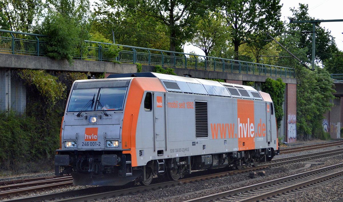hvle - Havelländische Eisenbahn AG mit "246 001-2" [NVR: "92 80 1246 001-2 D-HVLE"] am 06.08.19 Vorbeifahrt Bahnhof Hamburg Harburg.