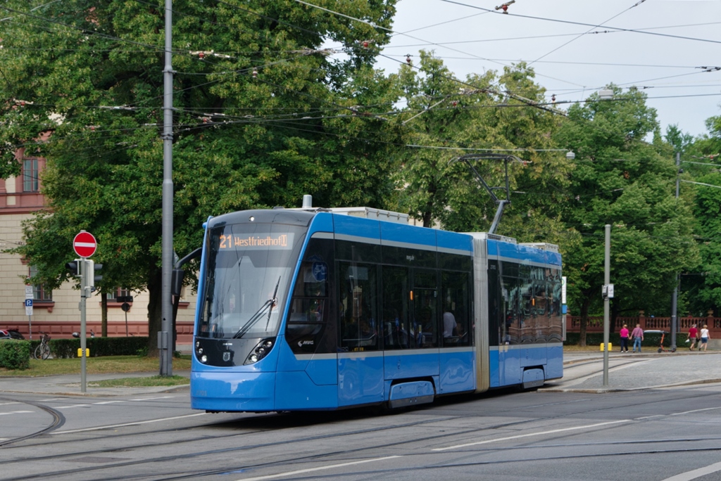 T2 2701 als Linie 21 beim verlassen der Haltestelle Maxmonument, 27.07.2019