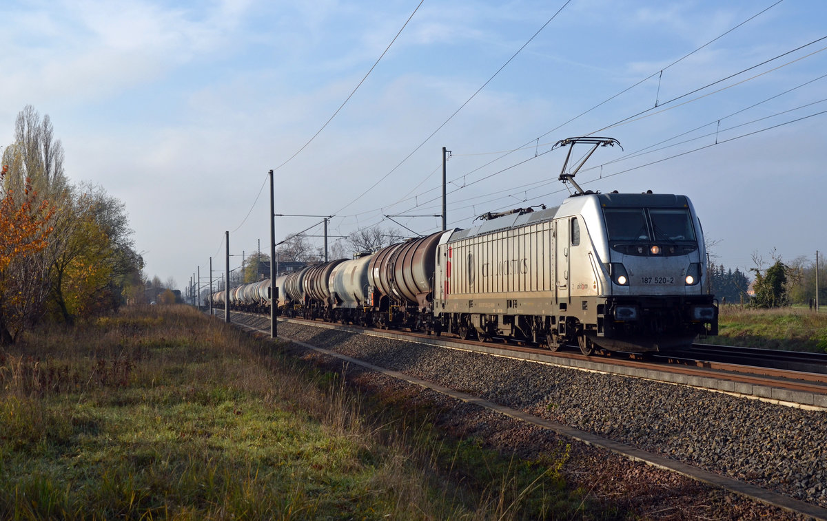 187 520 führte für die CTL am 24.11.19 einen Kesselwagenzug durch Brehna Richtung Bitterfeld.