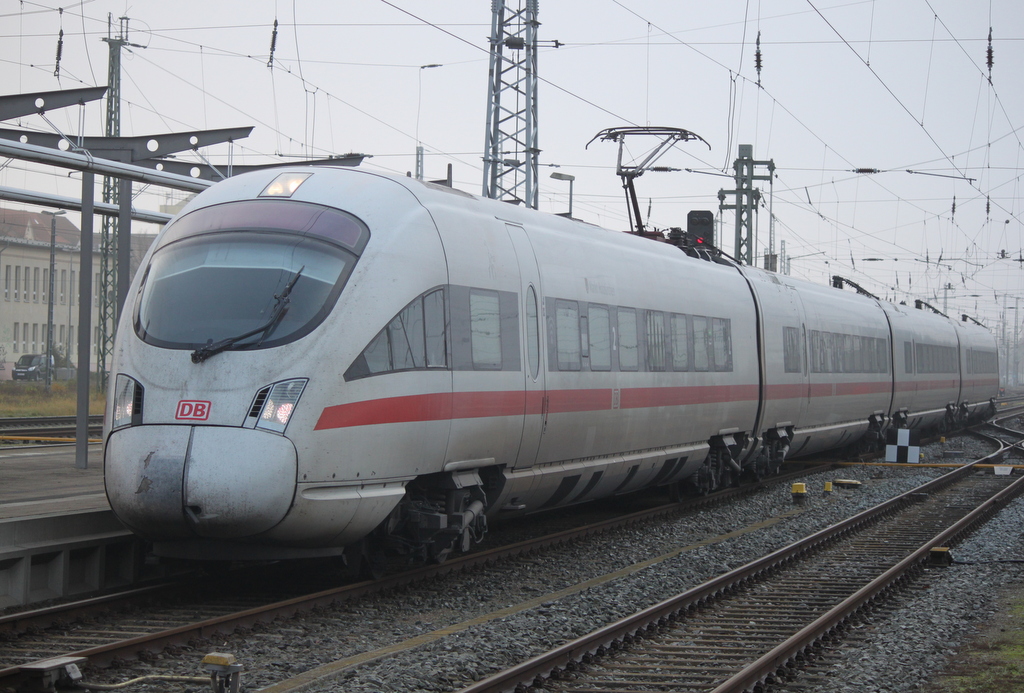 411 560 als ICE 1727(Rostock-München)bei der Bereitstellung im Rostocker Hbf.01.12.2019
