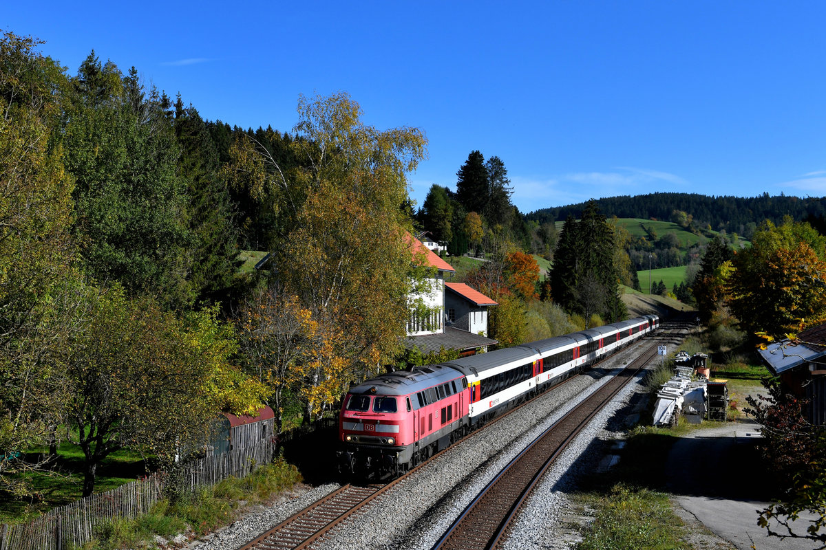 Für den nachmittäglichen gemischten Güterzug von München Nord nach Salzburg Gnigl war am 01. Oktober 2019 die für Klima- und Umweltschutz werbende 1016.020 eingeteilt. Sehnsüchtig wurde die Werbelok von den anwesenden Fotografen erwartet, eine Störung an der Strecke lies dies allerdings zum Geduldsspiel werden. Als der auch noch äußerst fotogen zusammengestelle EZ - man beachte die beiden fabrikneuen Kesselwagen hinter dem Taurus - endlich auf der Bildfläche erschien, kam aus der Gegenrichtung ein Meridian herangefahren. Der klassische Gegenzugschaden ließ sich nur durch einen früheren Auslösepunkt vermeiden.