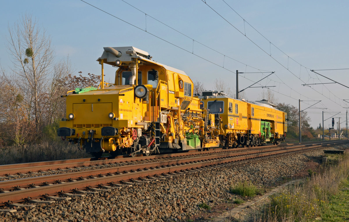 Zusammen mit einer Stopfmaschine rollte diese Planiermaschine der Bahnbau Gruppe am 24.11.19 durch Greppin Richtung Dessau.