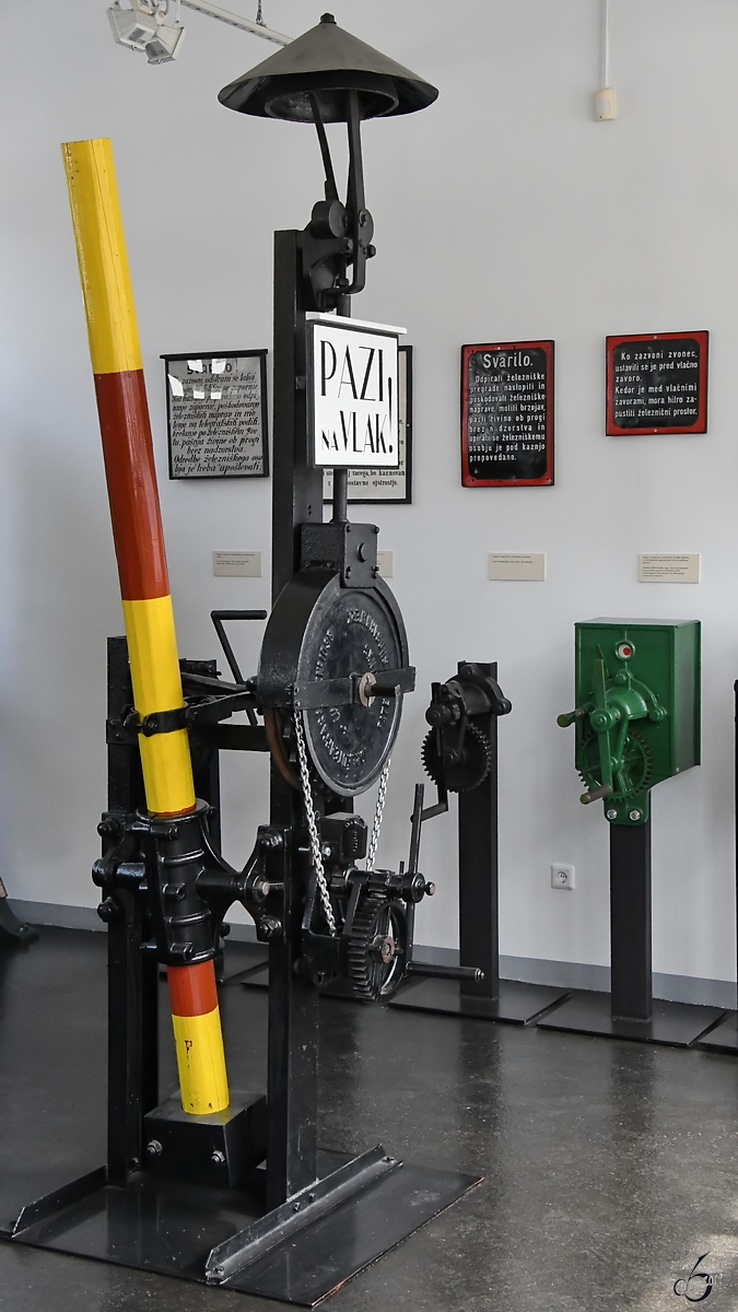 Eine alte Schranke war Ende August 2019 im Eisenbahnmuseum Ljubljana ausgestellt.