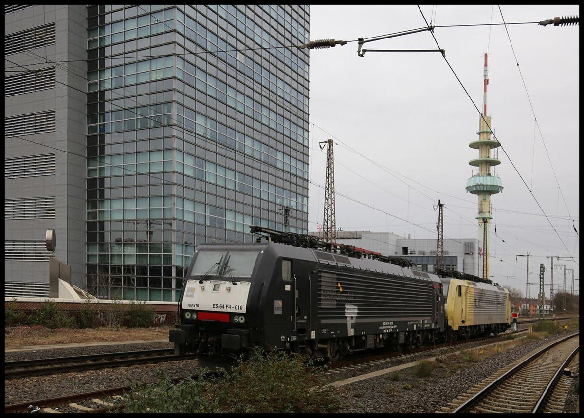 MRCE Dispolok 189910 stand zusammen mit Lokomotion Dispolok 189902 am 20.12.2019 um 10.45 Uhr auf einem Abstellgleis im HBF Duisburg.
