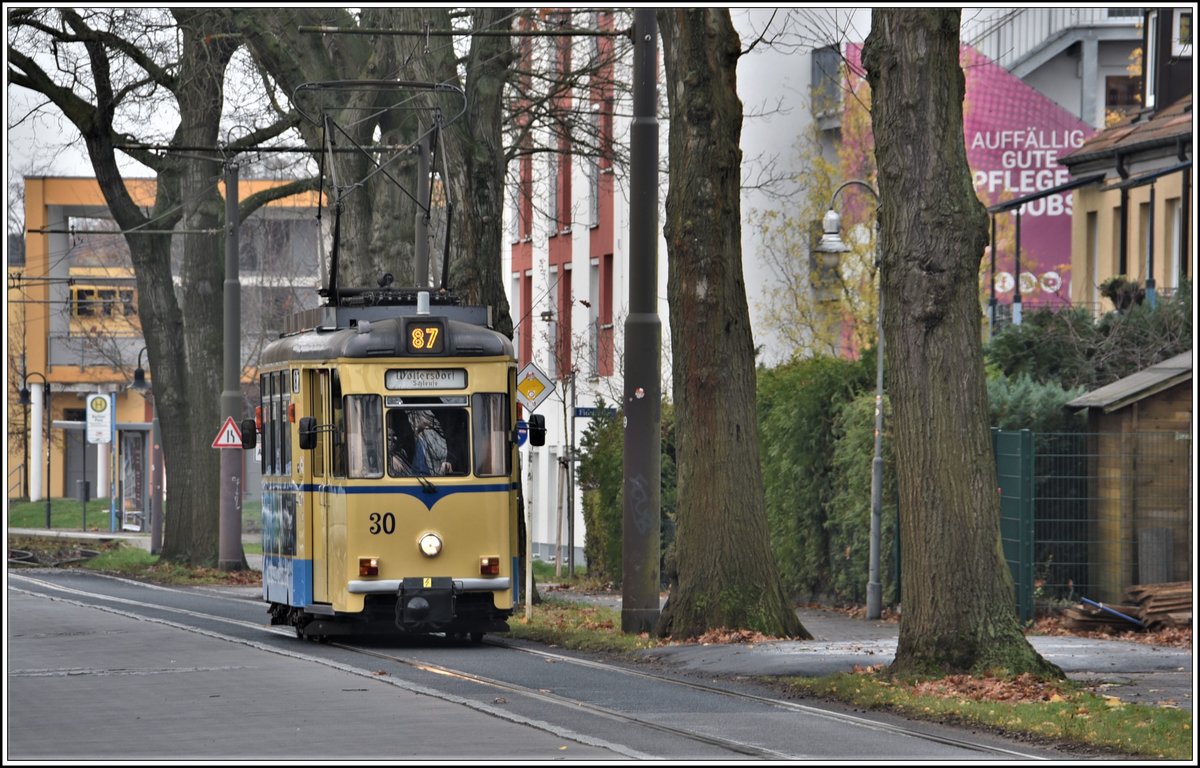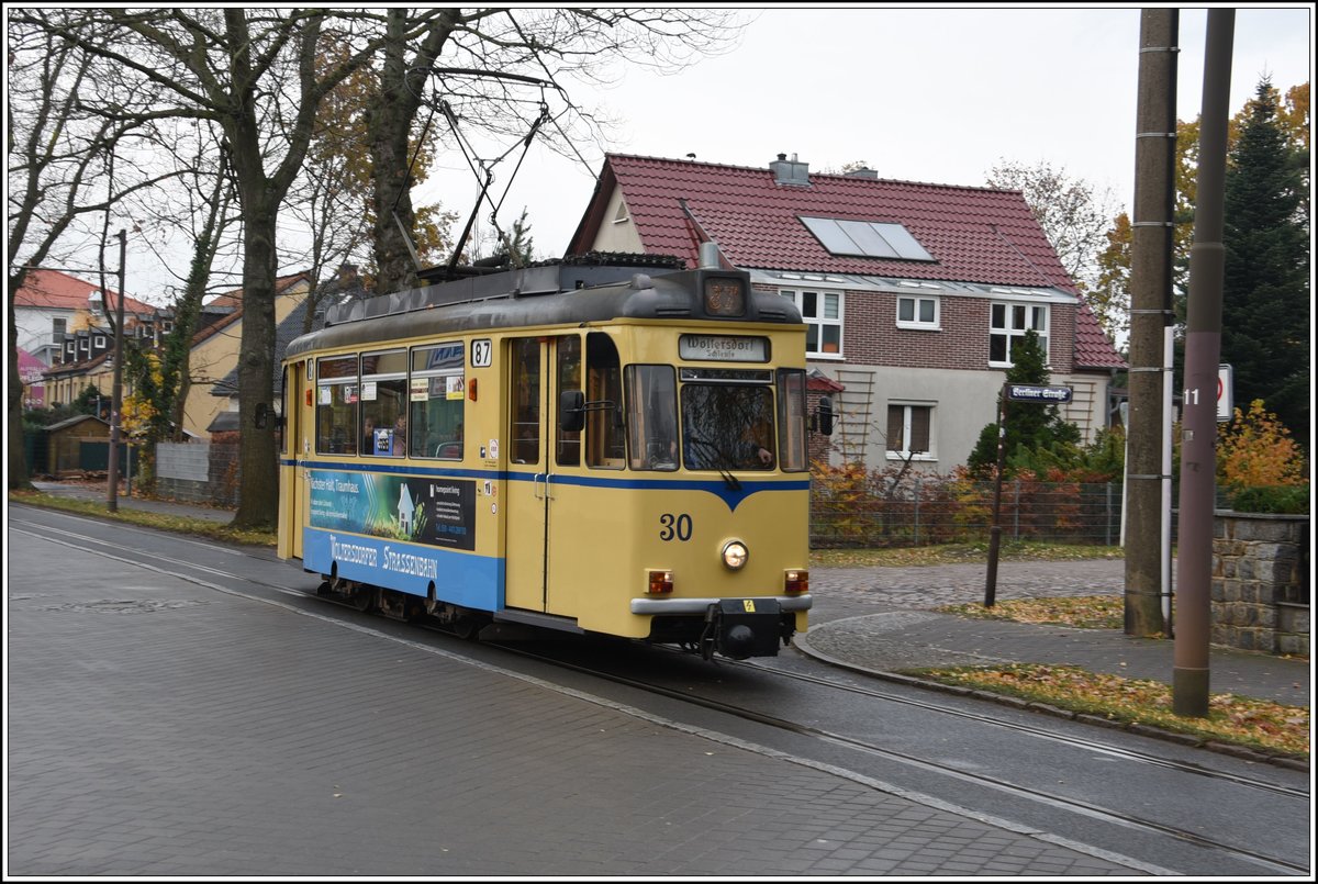 Strassenbahnlinie 87 Rahnsdorf - Woltersdorf Schleuse. Gothawagen T57 Nr. 30 in Rahnsdorf. (17.11.2019)