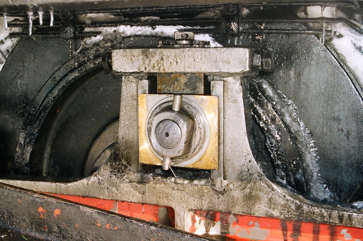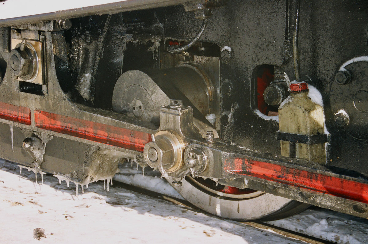 Am 07. Februar 2005 stehen die Lokomotiven 1099.07 und 1099.14 der Mariazellerbahn mit ihren Zügen im Bahnhof Mariazell. Detail am Triebwerk der Lok 1099.14.