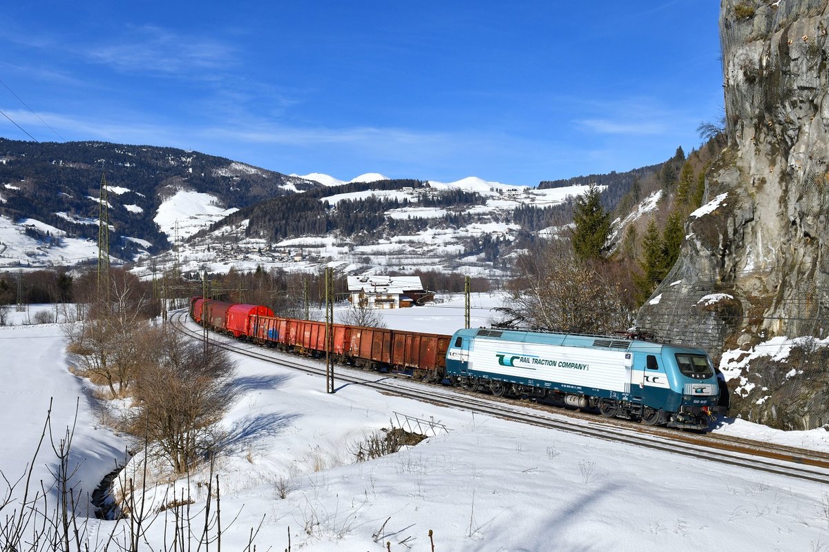 EU43 001 mit GAG 44221 am 24.01.2018 bei Sterzing.