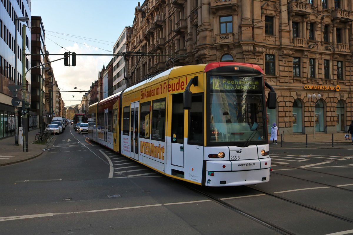 VGF Bombardier Flexity Classic S-Wagen 256 am 30.11.19 am Willy Brandt Platz in Frankfurt am Main