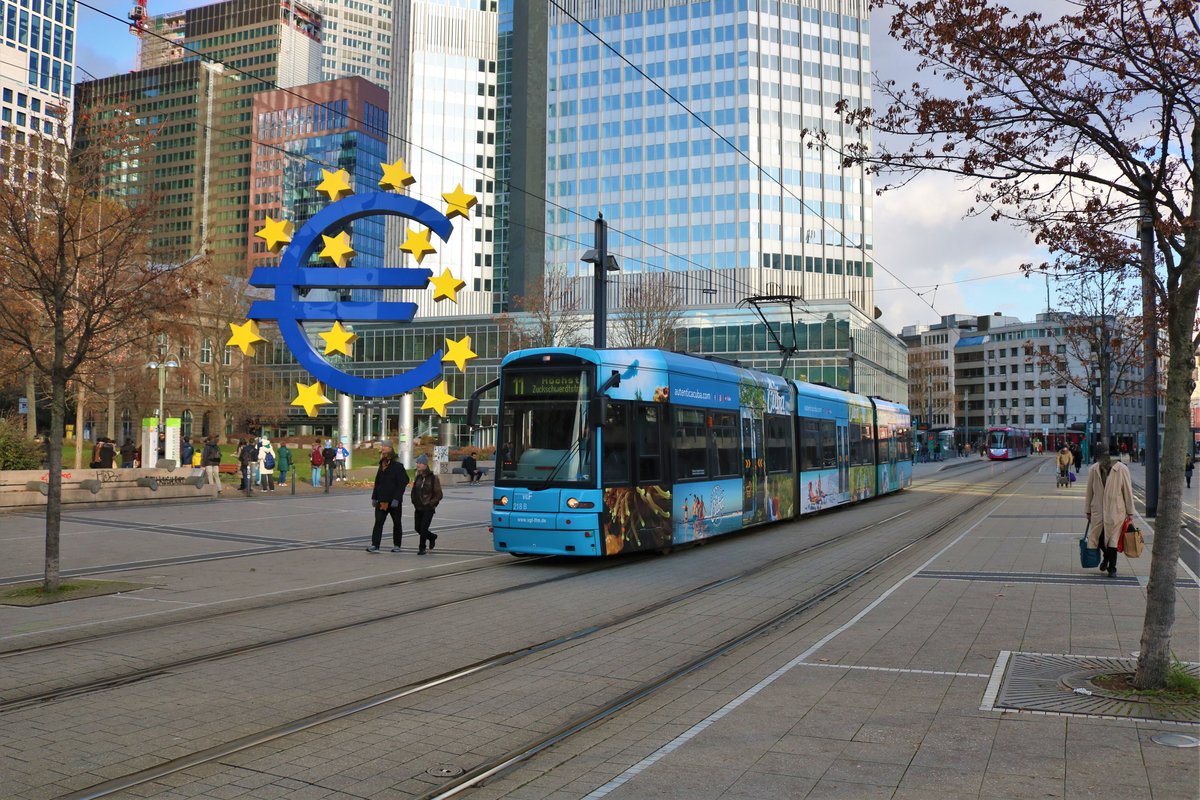 VGF Bombardier Flexity Classic S-Wagen 218 am 30.11.19 am Willy Brandt Platz in Frankfurt am Main