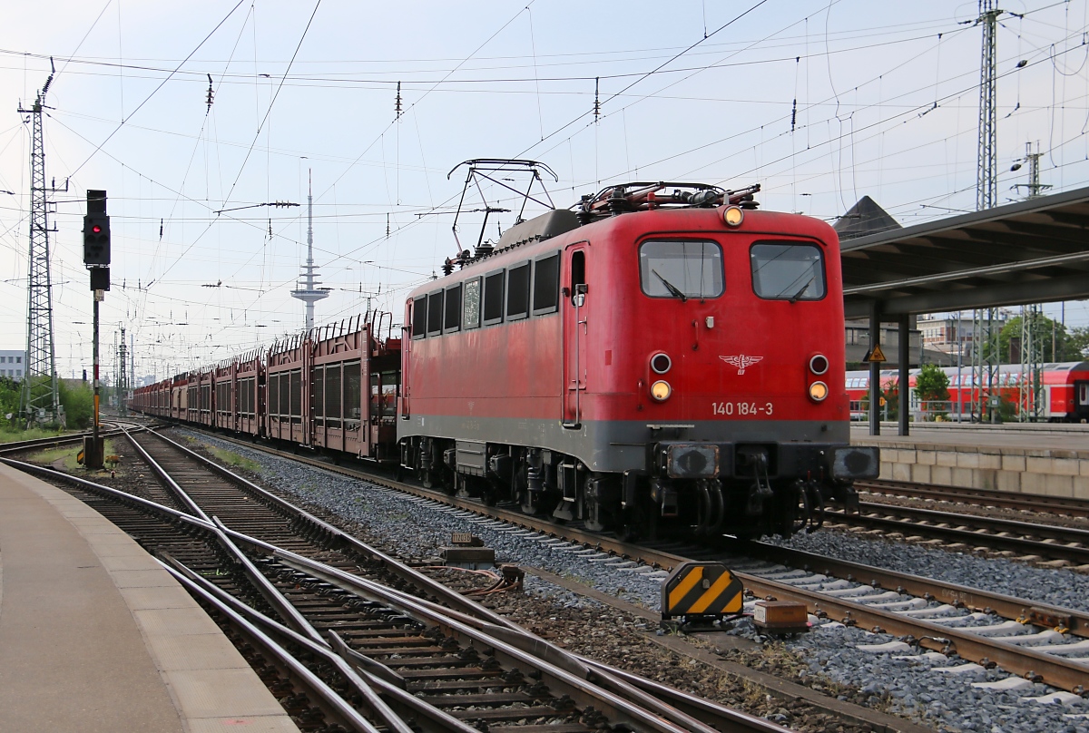 145 031 durchfährt mit einem Güterzug gen Hanau durch Hanau-Wilhelmsbad. Aufgenommen am 1.4.2017 11:44
