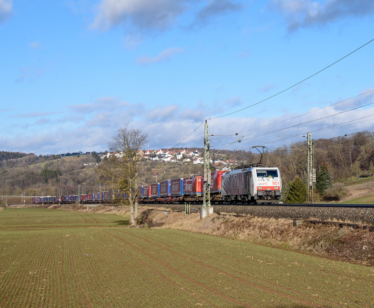 189 901 RTC-Lokomotion mit Winner-KLV Richtung Ulm.(Uhingen(Fils)9.2.2019).