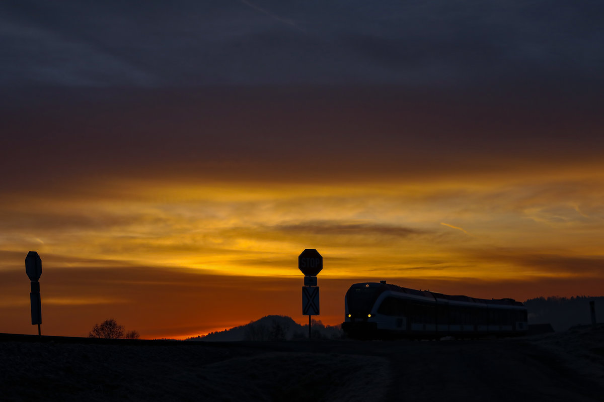 Am 9. Februar 2019 hat RABDe 500 033 "Gallus Jakob Baumgartner" die NBS gerade verlassen und fährt auf der ABS weiter Richtung Solothurn.