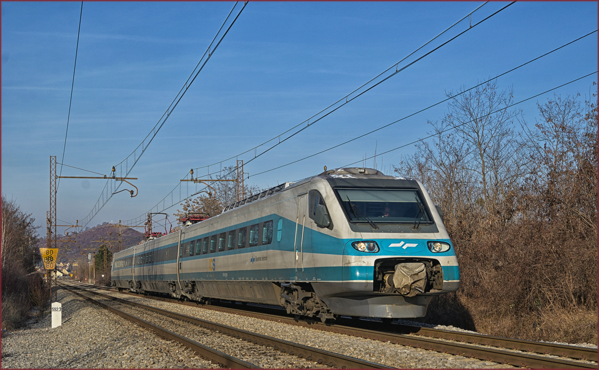 SŽ 310-00? fährt durch Maribor-Tabor Richtung Ljubljana. /7.2.2019