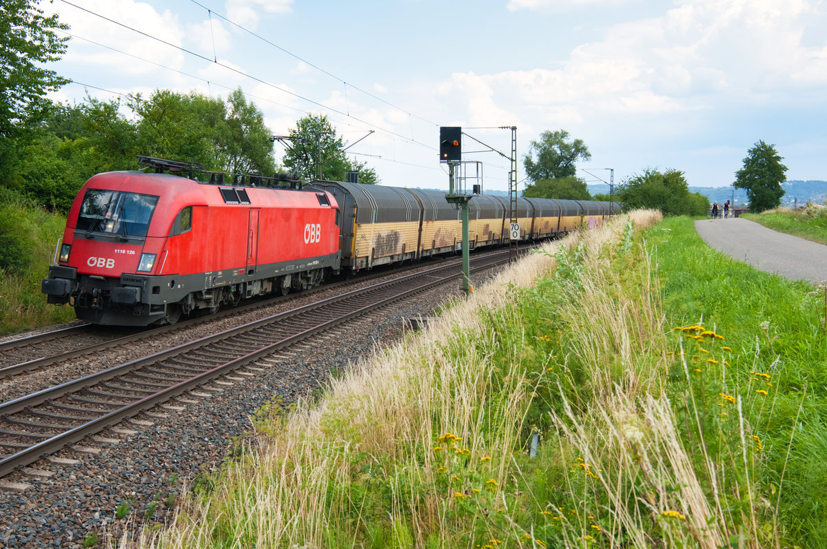 Die 193 848 der EGP pendelt zumeist tagein tagaus auf der Nord-Süd-Strecke mit Neuwagentransporten quer durch die Bundesrepublik. Diesen intensiven Einsatz sieht man ihr inzwischen auch an. Am 29. September 2018 fuhr mir die Lok mit dem GA 48929 von Bremerhaven Kaiserhafen nach Kalsdorf vor die Linse. Die Eisenbahngesellschaft Potsdam bespannt diesen Zug im Auftrag von DB Cargo bis Passau. In Graz werden die Waggons dann mit fabrikneuen Fahrzeugen der Marken BMW und Mini beladen. Nächstes Ziel ist wieder der Nordseehafen, dort werden die Autos für den Export nach Übersee verschifft.