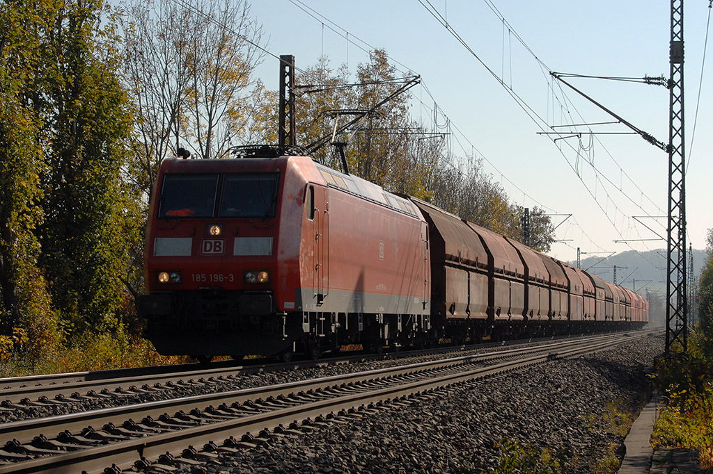 Am 29. September 2018 wies der EZ 51187 von Seelze Mitte nach München Nord Rbf eine schöne Zusammenstellung auf. Bemerkenswert waren insbesondere die schweren Granitblöcke, die auf den ersten fünf Wagen transportiert wurden. Als Zuglok fungierte die noch im Neuzustand befindliche 187 141. Aufnahmeort war Harrbach im Maintal.