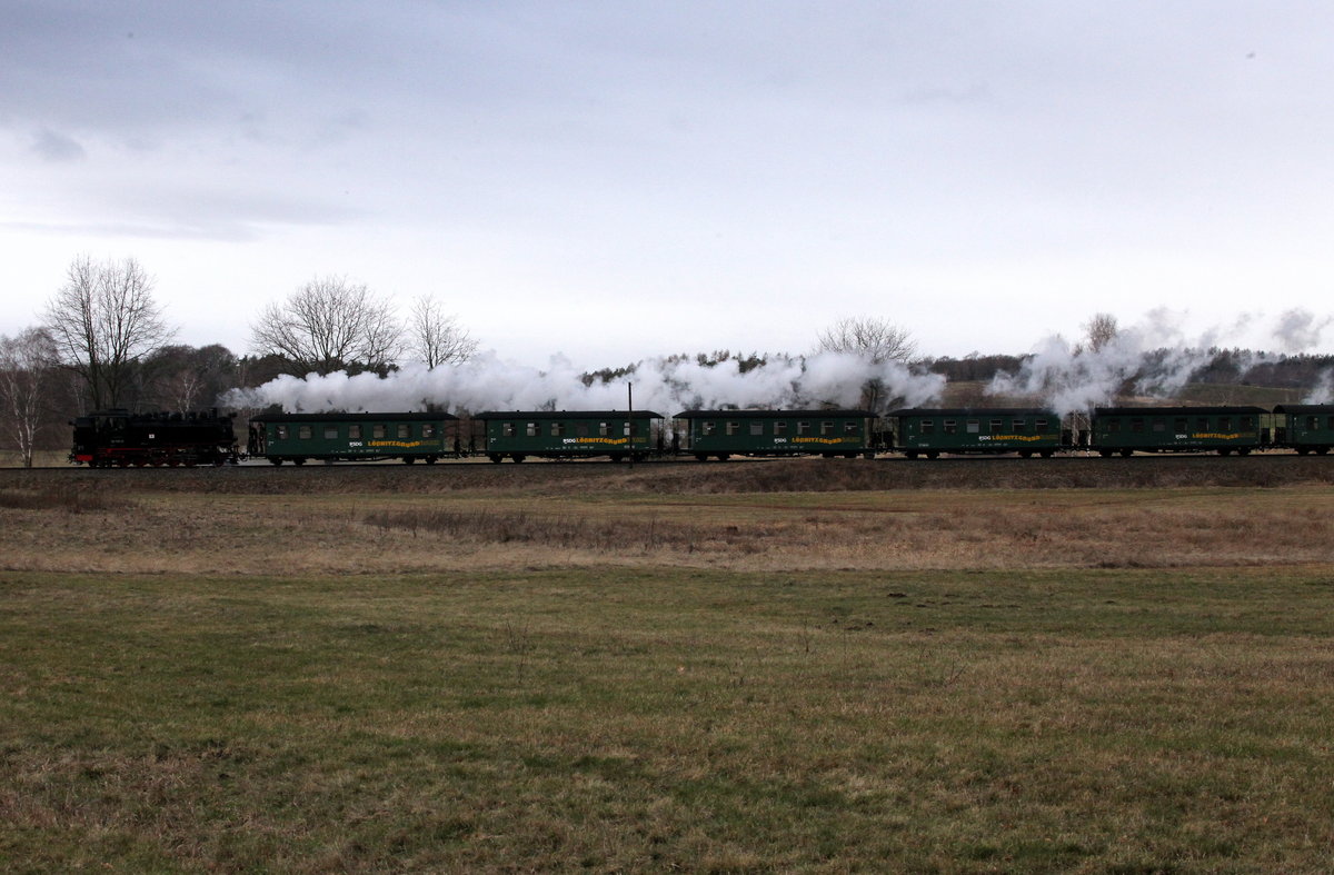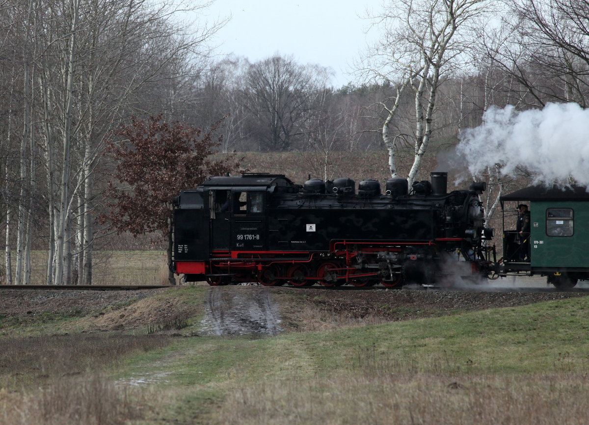 Zwischen Moritzburg und Friedewald Bad ist hier 99 1761-8 unterwegs. 27.01.2019 12:30 Uhr.
