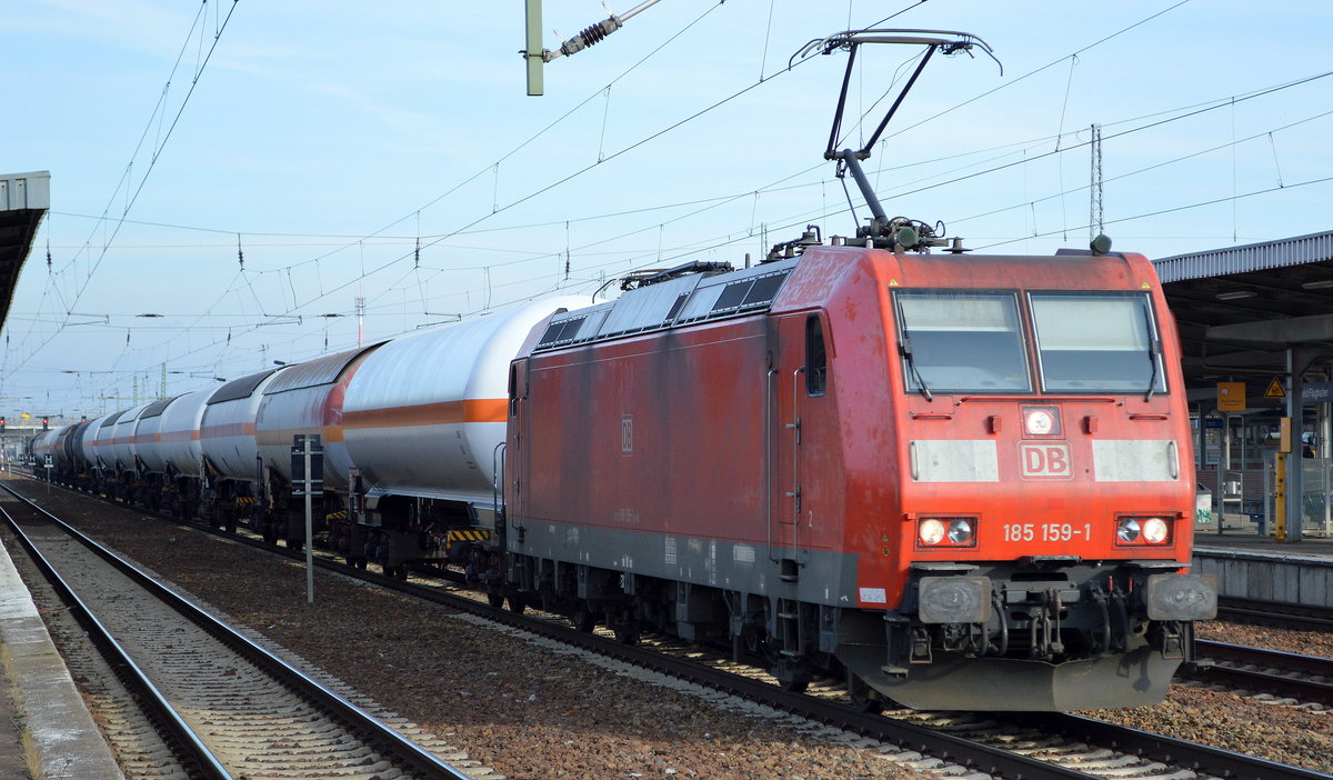 DB Cargo Deutschland AG mit  185 159-1  [NVR-Number: 91 80 6185 159-1 D-DB] und gemischtem Kesselwagenzug am 30.01.19 Bf. Flughafen Berlin-Schönefeld.