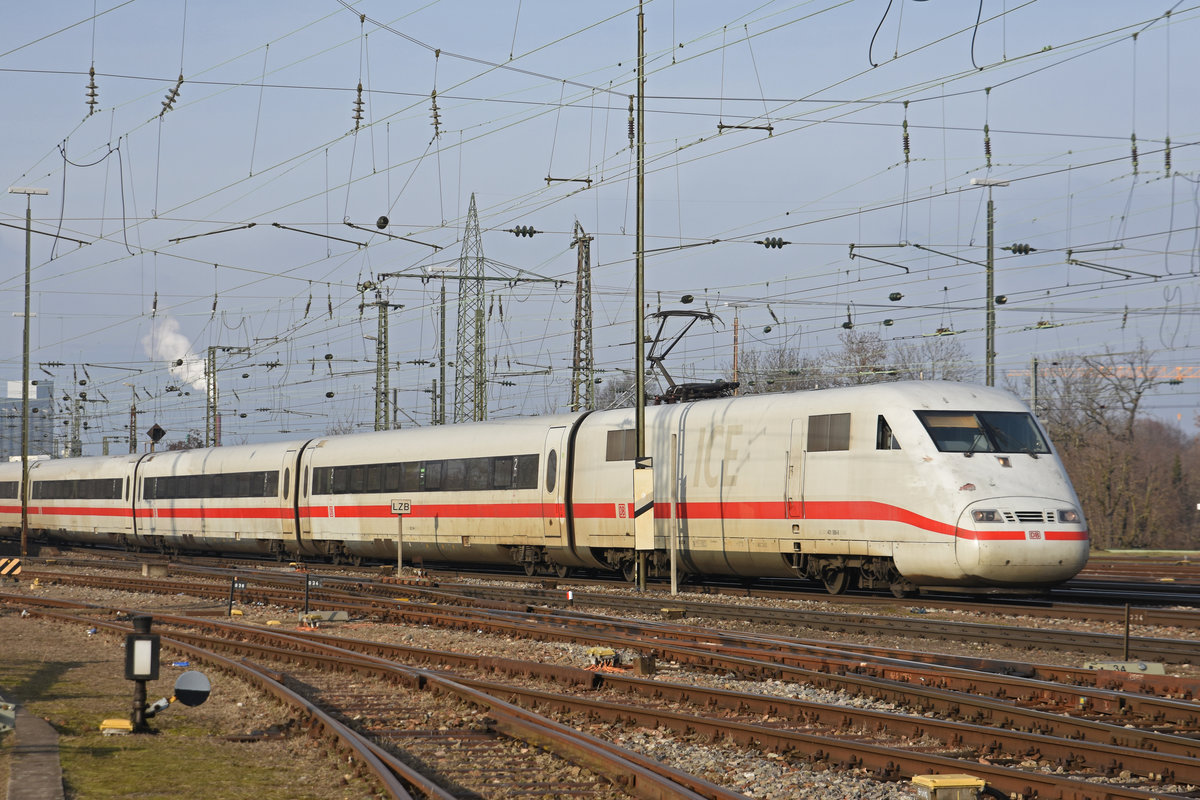 ICE 401 089-8 fährt beim badischen Bahnhof ein. Die Aufnahme stammt vom 23.01.2019.