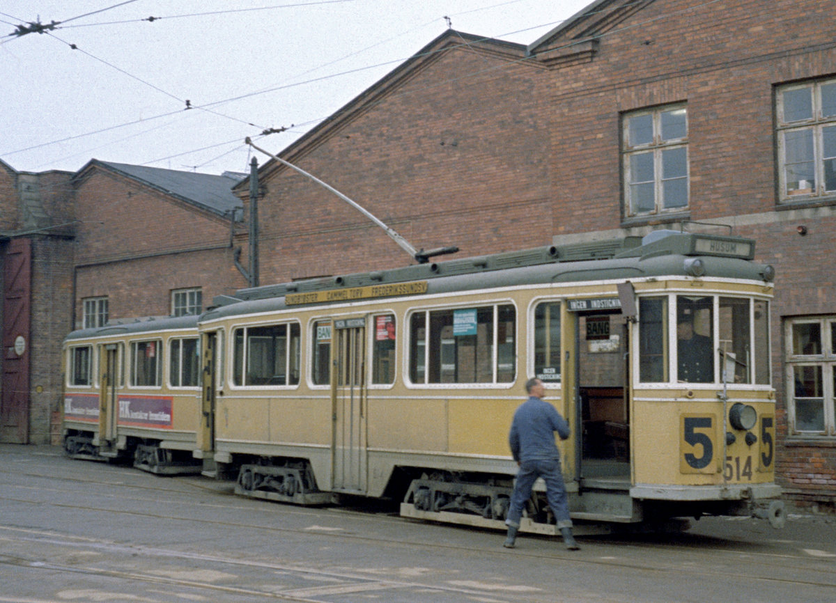 København / Kopenhagen Københavns Sporveje SL 5 (Tw 514 + Bw 15**) København N, Nørrebro, Nørrebro Remise (: Straßenbahnbetriebsbahnhof Nørrebro) am 25. März 1970. - Scan eines Farbnegativs. Film: Kodak Kodacolor X.