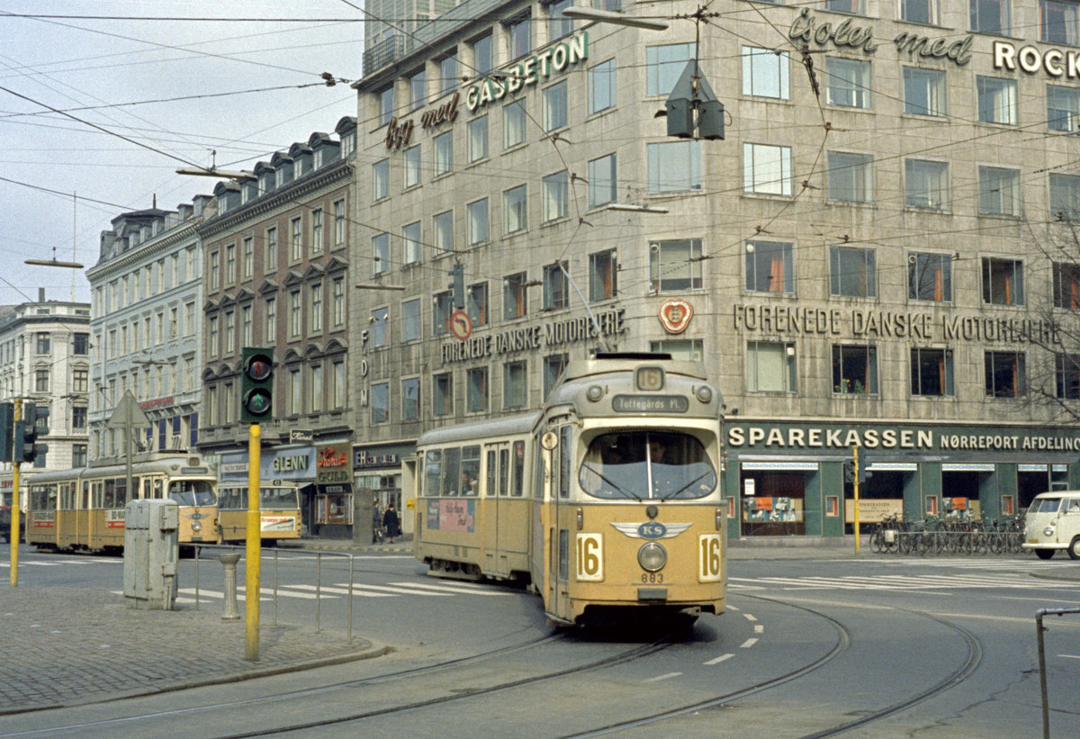 København / Kopenhagen Københavns Sporveje SL 16 (DÜWAG/Kiepe-GT6 883) København K, Zentrum, Frederiksborggade / Nørre Voldgade / Nørreport Station (: DSB-Bahnhof Nørreport) am 27. März 1970.