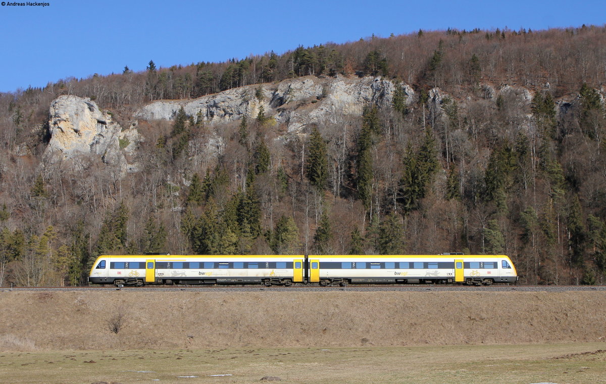 611 034-9 als RE 22314 (Ulm Hbf-Donaueschingen) bei Hausen im Tal 15.2.19