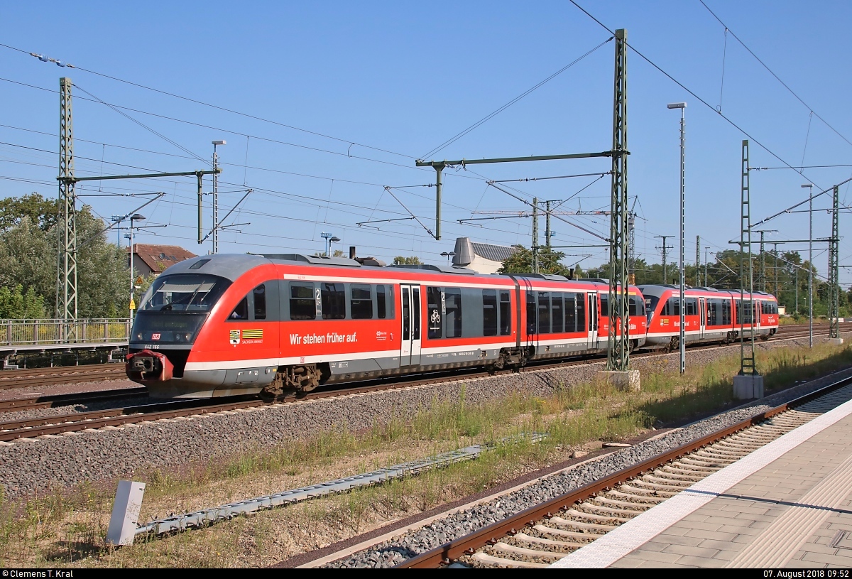 642 166-2 und 642 ??? (Siemens Desiro Classic) der Elbe-Saale-Bahn (DB Regio Südost) als Tfzf durchfahren Magdeburg Hbf in südlicher Richtung.