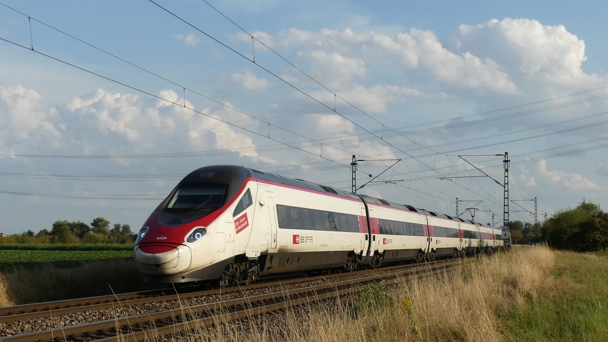 Der ECE 52 Milano - Frankfurt auf der Riedbahn zwischen Riedstadt Wolfskehlen ud Groß-Gerau Dornheim. Aufgenommen am 22.8.2018 18:47