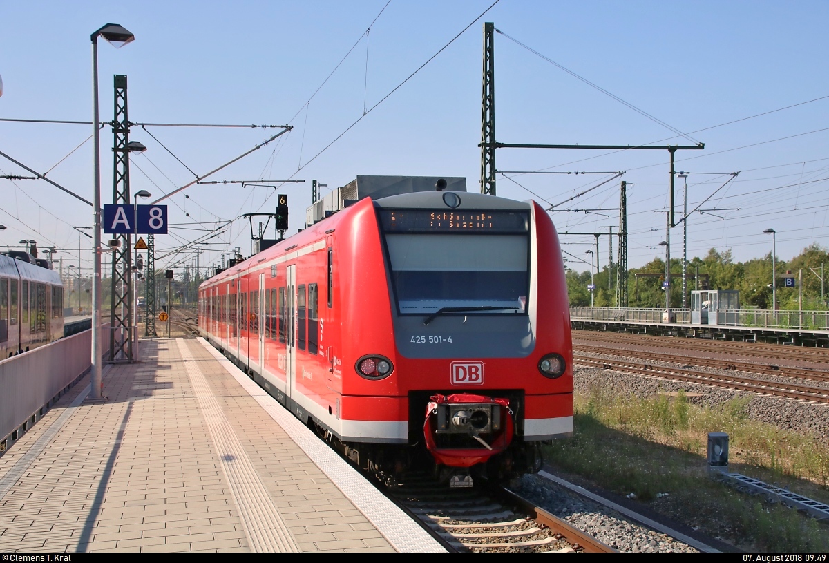 Nachschuss auf 425 501-4 der S-Bahn Mittelelbe (DB Regio Südost) als S 39021 (S1) von Stendal nach Schönebeck-Bad Salzelmen, die Magdeburg Hbf auf Gleis 8 verlässt.