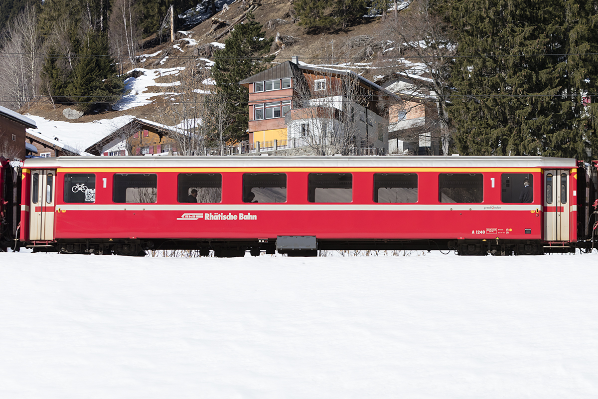 ARB BDhe 2/4 7 von 1925 mit dem B 33 und dem Vorstellwagen 65 am 16. Februar 2019 auf Talfahrt unterhalb Rigi Staffel.