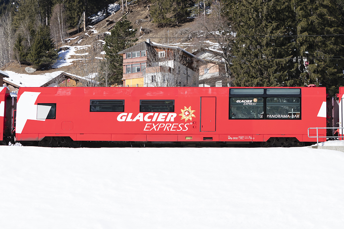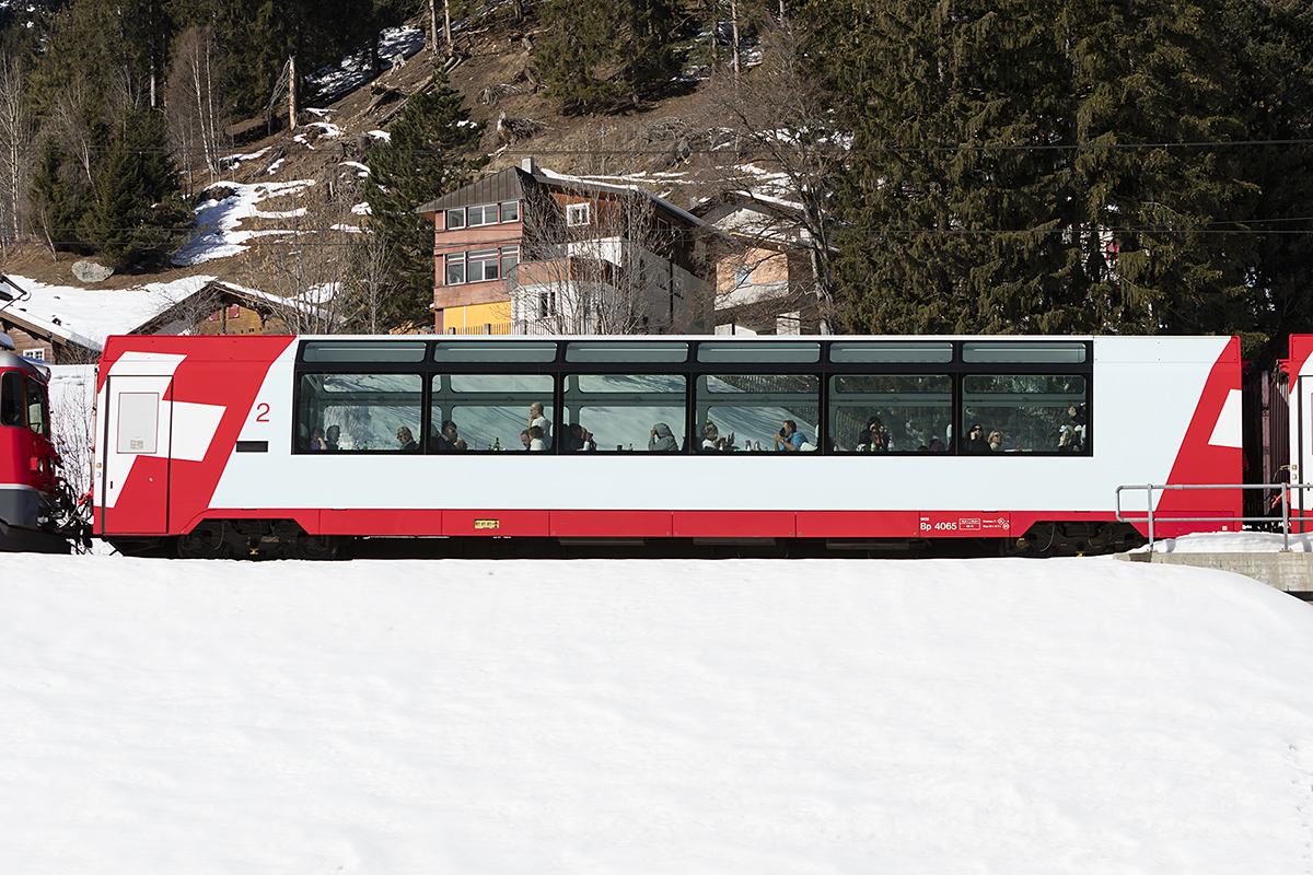 ARB BDhe 2/4 7 von 1925 mit dem B 33 und dem Vorstellwagen 65 am 16. Februar 2019 auf Talfahrt unterhalb Rigi Staffel.