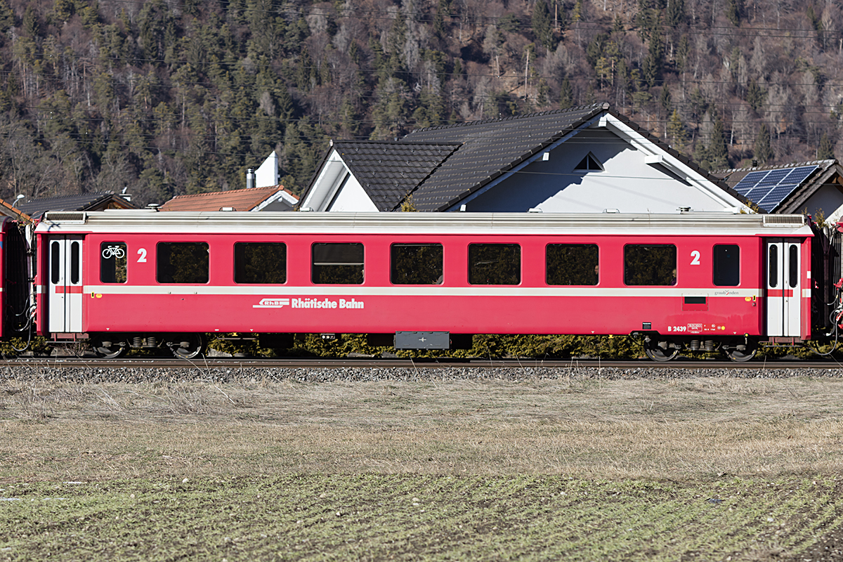 Auf dem Weg von Chur nach Arosa hat man viele bahntechnische Eigenheiten, die sich auf der Fahrt abwechseln, so auch der Viadukt Clasaurer Tobel zwischen Lüen-Castiel und St. Peter-Molinis, der ähnlich dem Landwasserviadukt direkt bergwärts in den Clasaurer Tunnel übergeht. gerade auf dem unteren Abschnitt ab Chur Sand bis Langewies ist der beste Platz für unsereinen in Fahrtrichtung rechts am offenen Fenster.21.02.2019