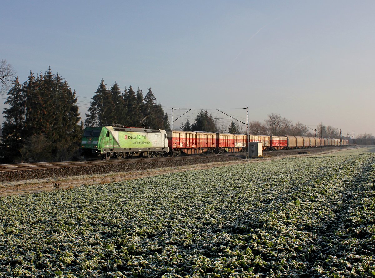 Die 185 389 mit einem Güterzug am 28.12.2015 unterwegs bei Langenisarhofen.