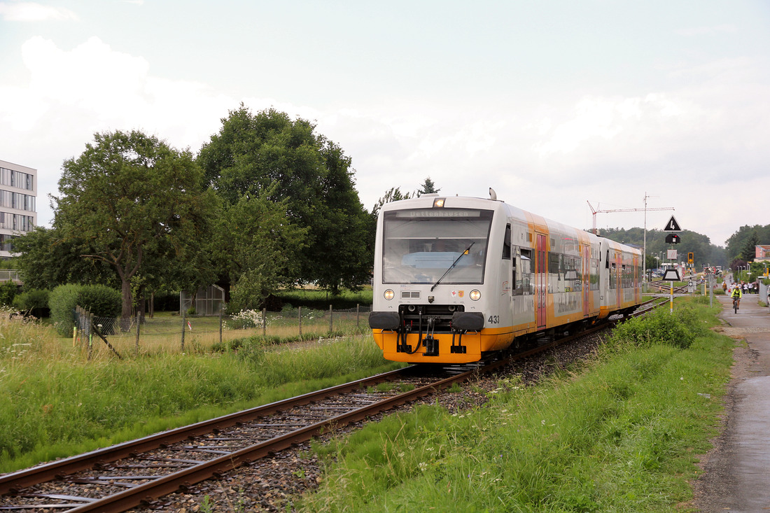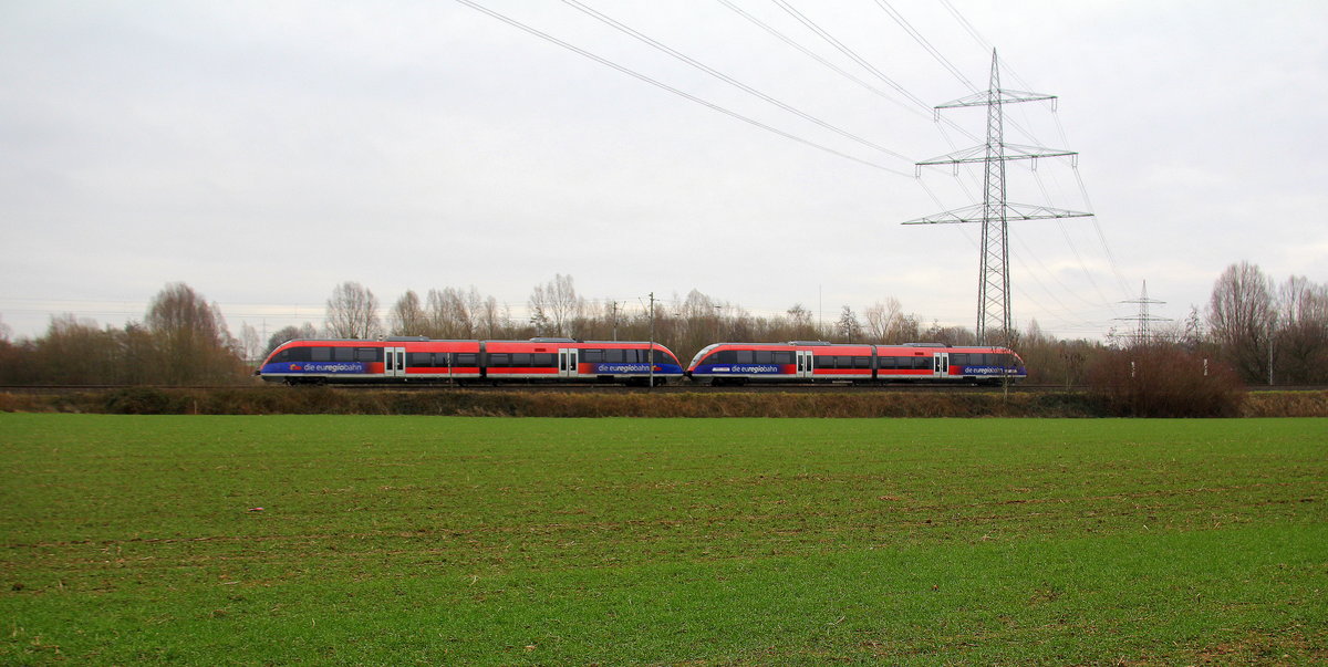 Die Euregiobahn RB20 Richtung Aachen unterwegs zwischen Kohlscheid und Richterich.