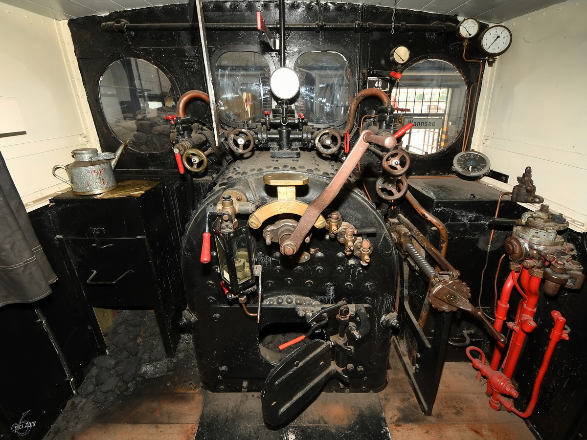 Führerstand der Dampflokomotive R 3/3  4701 . (Eisenbahnmuseum Koblenz, August 2018)