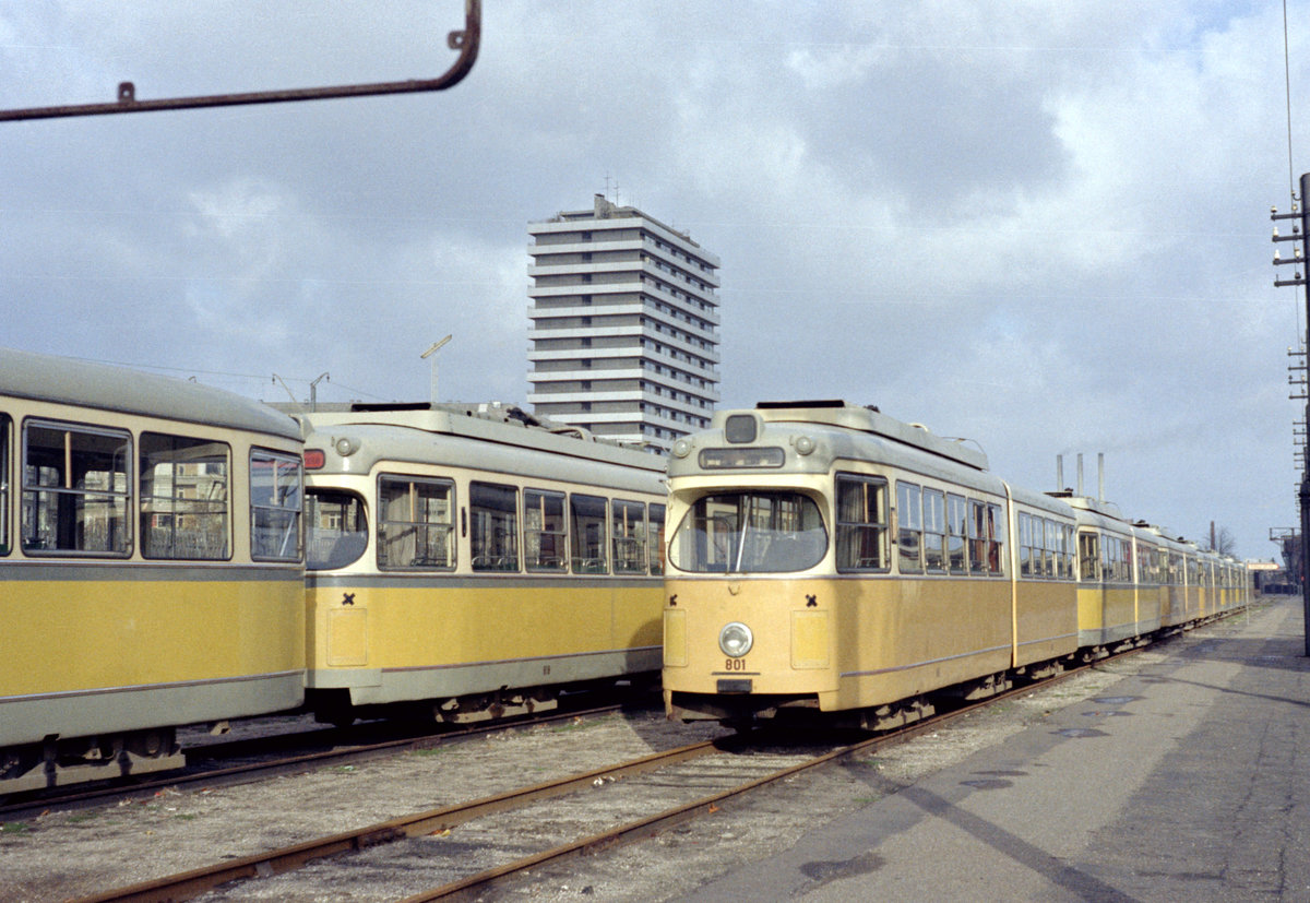 København / Kopenhagen Københavns Sporveje: Die DÜWAG-GT6 801 - 840 und 842 - 851 wurden Ende 1969 der Straßenbahn Alexandria in Ägypten übereignet - obschon die Triebwagen noch viele Jahre die Benutzer des öffentlichen Verkehrs in Kopenhagen hätten bedienen können, wenn die Kopenhagener Politiker ihre unverantwortliche und menschenfeindliche Umwelt- und Verkehrspolitik nicht geführt hätten. - Im Kopenhagener Freihafen stehen am 26. Oktober 1969 einige "Düsseldorfer" (wie man sie in Kopenhagen nannte), u.a. GT6 801, der 1960 geliefert wurde. Sie erwarten die Verschiffung nach Ägypten. - Scan eines Farbnegativs. Film: Kodak Kodacolor X.